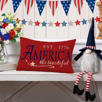 4th of July Patriotic Signs Throw Pillow Covers 12x20 Inch,Red White and Blue