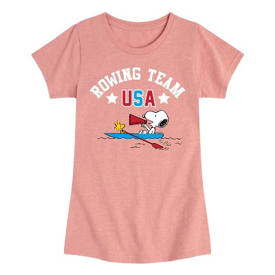 Girls' - Peanuts - Snoopy Woodstock USA Rowing Team Fitted Short Sleeve Graphic T-Shirt