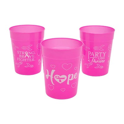 Fun Express 5 1/2" 10 oz. Breast Cancer Thriver Reusable Plastic Cups - 24 Pc.