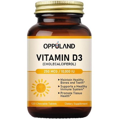 Oppuland D3 10000 IU 250 Mcg, Cholecalciferol, Maintains Healthy Bones & Teeth, & a Healthy Immune System, Dietary Supplement - 100 Chewable Tablets