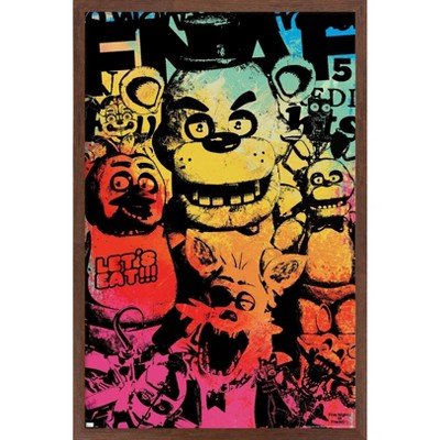Trends International Five Nights at Freddy's - Rainbow Framed Wall Poster Prints Mahogany Framed Version 14.725" x 22.375"