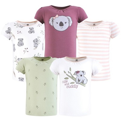 Hudson Baby Infant Girls Short Sleeve T-shirts 5-Pack, Koala