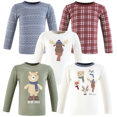 Hudson Baby Infant Boys Cotton Poly Long Sleeve T-shirts 5-Pack, Cozy Woodland Friends