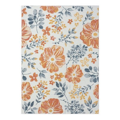 LR Home Durable Performance Area Rug Outdoor in Orange/Multicolored, 5'3" x 7'10"