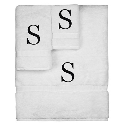 BC BARE COTTON Monogrammed Towel Set, Personalized Gift, Set of 3 - White - Black Block