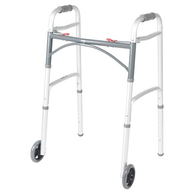 Drive Medical PreserveTech Deluxe Folding Walker - Two-Button Release, 5″ Wheels
