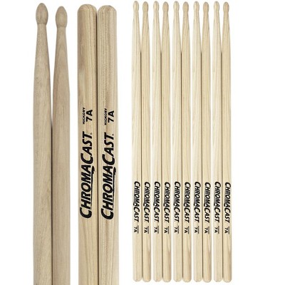 ChromaCast 7A USA Made Hickory Drumsticks Pair - Wood Tipped - Drum Sticks Tour Tested by Pro Drummers - Real American Hickory Wood