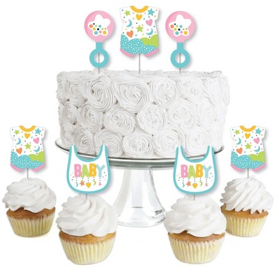 Big Dot of Happiness Colorful Baby Shower - Dessert Cupcake Toppers - Gender Neutral Party Clear Treat Picks - Set of 24
