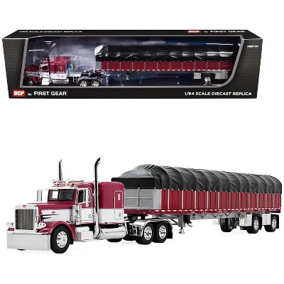 Peterbilt 389 w/63" Flat Top Sleeper & 53’ Wilson Flatbed Trailer w/Wagon Maroon w/White 1/64 Die Cast Model by DCP/First Gear
