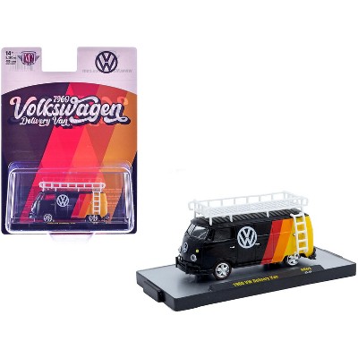 1960 Volkswagen Delivery Van Black with Stripes and White Roof Rack Limited Edition 1/64 Diecast Model Cars by M2 Machines