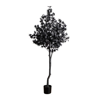 Nearly Natural 6-ft Pre-Lit Artificial Halloween Black Maple Tree with 300 Orange & Purple LED Lights