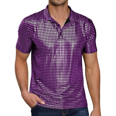 Lars Amadeus Men's Short Sleeve Sparkle Glitter Prom 70s Disco Nightclub Party Sequin Polo Shirts