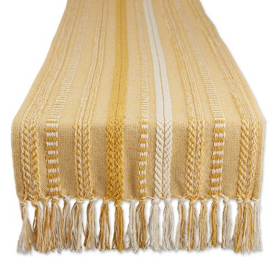 Design Imports Braided Stripe Jacquard Fringe Table Runner, 15X72", Honey Gold