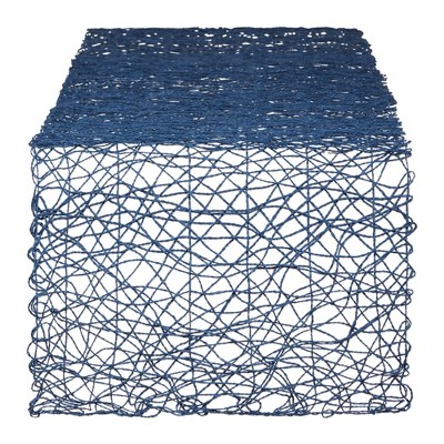 Saro Lifestyle Handwoven Net Chindi Table Runner, Blue, 16"x72"