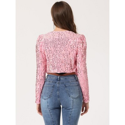 INSPIRE CHIC Women's Sequin Long Sleeve Open Front Party Cropped Jacket