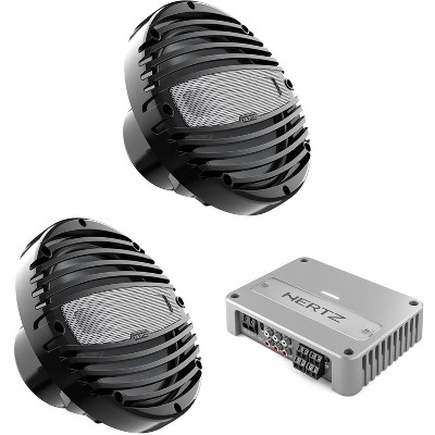 Hertz 2 Pairs HMX 8-TC 8" Black Sport Grill Coaxial Marine Speakers with Venezia V4C 4-Channel Compact Marine Amplifier