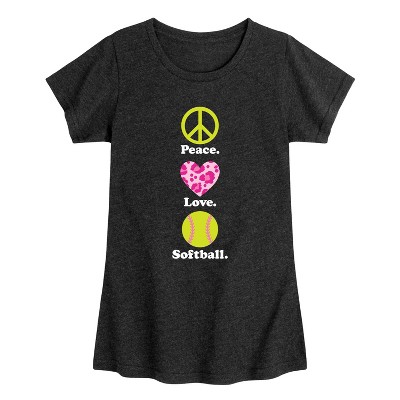Girls' - Instant Message - Peace, Love, Softball Fitted Short Sleeve Graphic T-Shirt