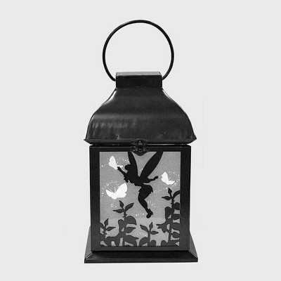 Disney 8.3" Tinker Bell Solar Metal Outdoor Lantern Black: Garden Lighting, Decorative Solar Powered LED