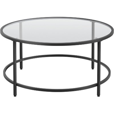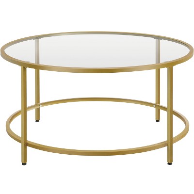 Yaheetech Modern Glass-Top Coffee Table Round End Table