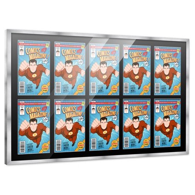 PosterPalooza | Comic Book Frame for 10 Bronze Age Comics 1970 - 1985 - Silver on Black Frame - 44x25.75