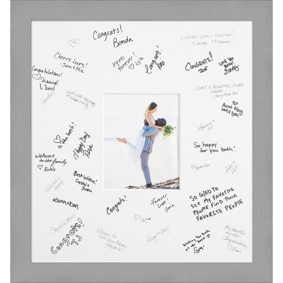 Brushed Signature Mat Picture Frame – Guest Book Alternative for Weddings, Graduations, or Retirement – Autograph Photo Mat for Signature Board