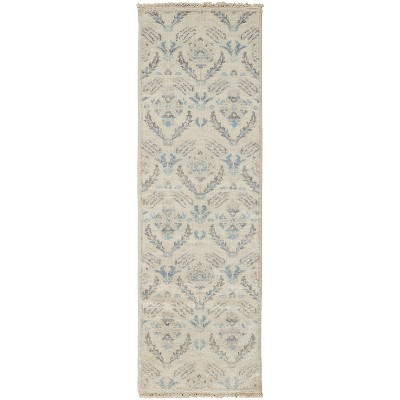HomeRoots 8' Gray and Ivory Wool Floral Hand Knotted Runner Rug With Fringe