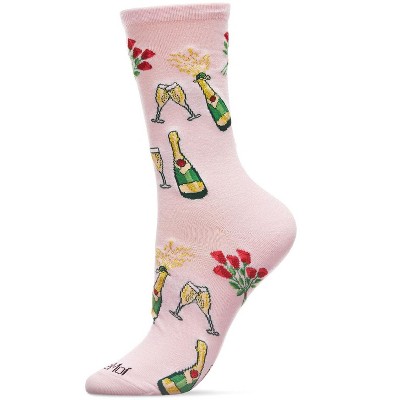 Memoi Champagne Celebration Bamboo Blend Crew Socks Powder Pink 9-11
