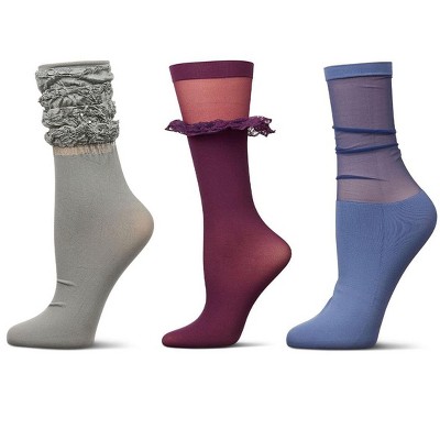 MeMoi Women's 3 Pair Pack Fashion Anklet Socks