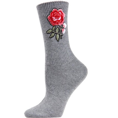 Memoi Women's Embroidered Rose Path Vintage Style Crew Socks Gray Heather 9-11
