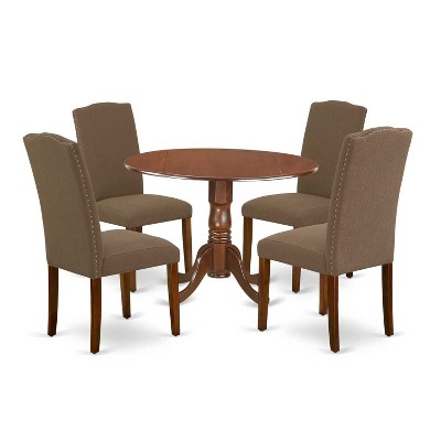 Round Kitchen Table Set 5pc 42" Table w/ Drop Leaves & 4 Parsons Chairs - Rustic Dining Set