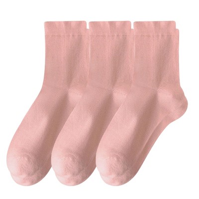 Anna-Kaci Women's Minimalist Solid Pink Crew Socks 3-Pack Soft Cotton Blend Comfort Fit Seamless Toe Design