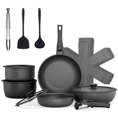 SUGIFT Cookware Set 18-Piece Nonstick Granite Pan Pot Set with Removable Handle Oven Safe Induction Compatible Dishwasher Safe