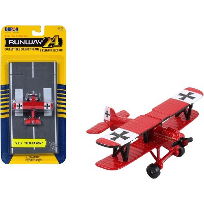 Royal Aircraft Factory S.E.5 Fighter Aircraft Red "Red Baron Livery" with Runway Section Diecast Model Airplane by Runway24