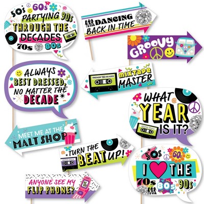 Big Dot of Happiness Funny Through the Decades - 50s, 60s, 70s, 80s, and 90s Party Photo Booth Props Kit - 10 Piece