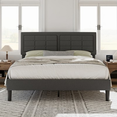 VECELO Twin/Full/Queen Size Upholstered Bed Frame Button Tufted Adjustable Headboard