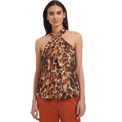 Calvin Klein Womens Crisscross Neck Sleeveless Blouse Top