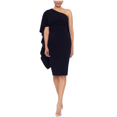 XSCAPE Womens Draped Midi Dress, black, 16