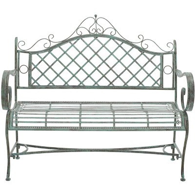 Yardgrace Patio Park Steel Garden Bench Porch Path Chair Outdoor with Carved Floral Back