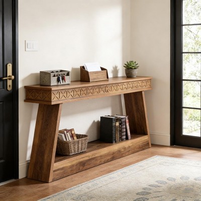 a frame rustic oak console table