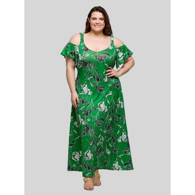 24seven Comfort Apparel Ruffle Cold Shoulder A Line Plus Size Maxi Dress