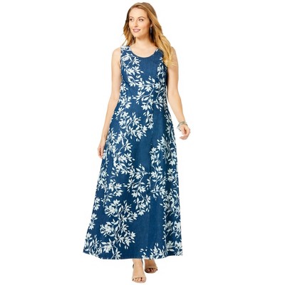24seven Comfort Apparel Womens Pink Print Lightweight Spaghetti Strap Pocket Maxi Dress