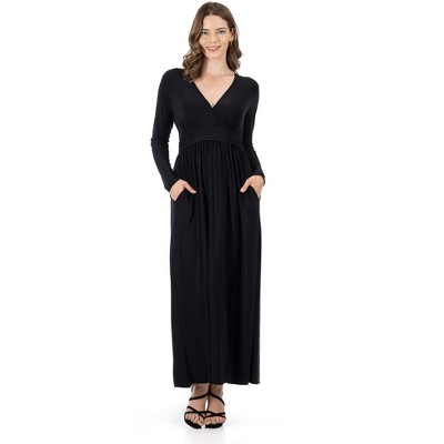 Womens Long Sleeve V-Neck Pleated Empire Waist Side Slit Maxi Dress - 24seven Comfort Apparel™