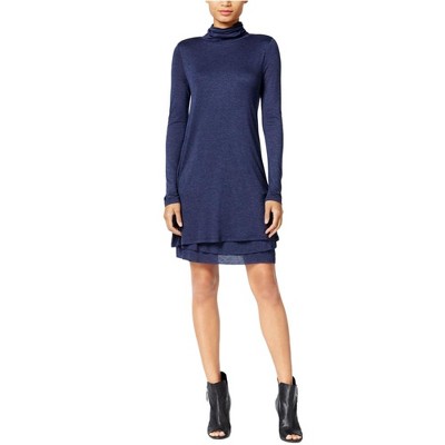 Kensie Womens Tiered Turtleneck A-line Shirt Dress
