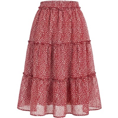 INSPIRE CHIC Women's Polka Dots Tiered Ruffle Elastic High Waist Casual Flowy A-Line Knee Skirts