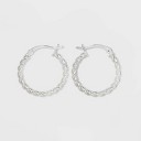 Brass Cross over Crystal Polished Hoop Earrings - A New Day™ Silver: Sterling, Nickel-Free, Simulated Stone