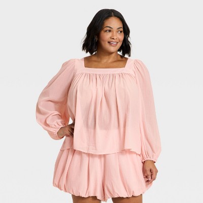 Women's Long Sleeve Square Neck Sheer Blouse - A New Day™ Pink