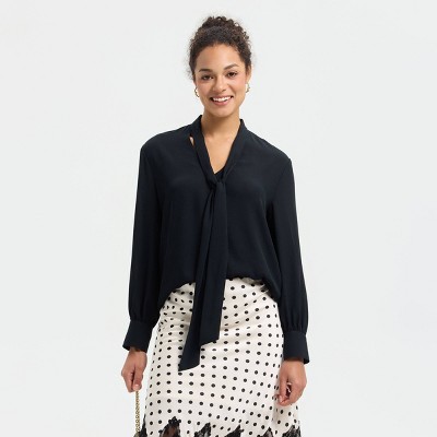 Women's Long Sleeve Tie Collar Woven Top - A New Day™