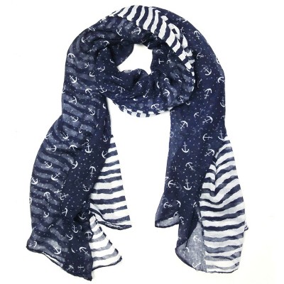 Wrapables Stripes and Anchor Nautical Marine Scarf 72" x 42"