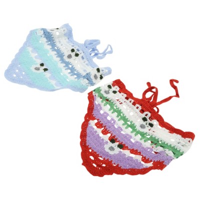 Unique Bargains Halloween Christmas Knitted Triangle Bandana Beige Sky Blue 2 Pcs
