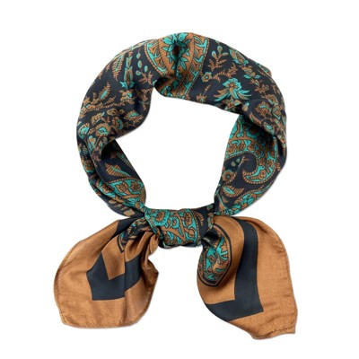 Wrapables Satin Neckerchief Square Scarf 26.5 x 26.5 Inches, Brown Paisley